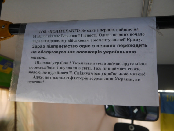 В объявлениях в маршрутках идет речь о переходе водителей на обслуживание пассажиров на государственном языке.
