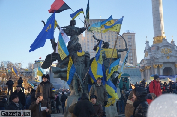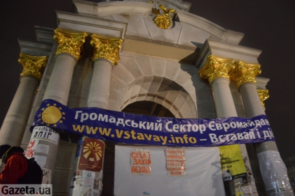 Монумент Независимости стал один из символов, почему появился Евромайдан. Именно у его подножия "Беркут" жестоко избил и разогнал студентов. Сегодня у подножия памятника располагается общественный актив Евромайдана. На вершине несколько раз устанавливали флаги Украины и ЕС, но их сдувало ветром.