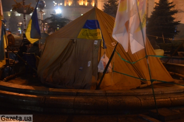 В фонтанах, что в самом сердце Майдана Независимости теперь стоят палатки. На первых порах это были сбиты наспех будки из целлофана и дерева. Теперь это юрты, в которых могут разместиться до десятка человек.