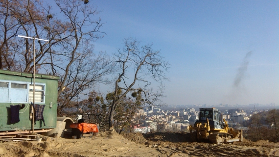 Застройка горы началась в 2012. Тогда общественность активно выступала против действий застройщика. Затем, после обращения защитников древнего Киева в прокуратуру и милицию, строительство приостановили. Но в 2013 году работы возобновили.
