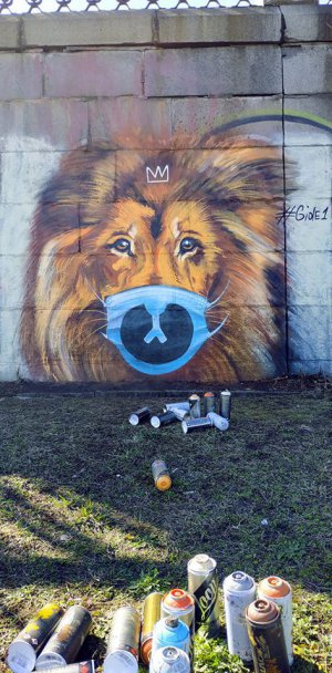 Днями киевскую Набережную, в сторону моста Патона украсил новый мурал – лев в маске. Пользователи соцсетей тут же прозвали его - символом борьбы против коронавируса.