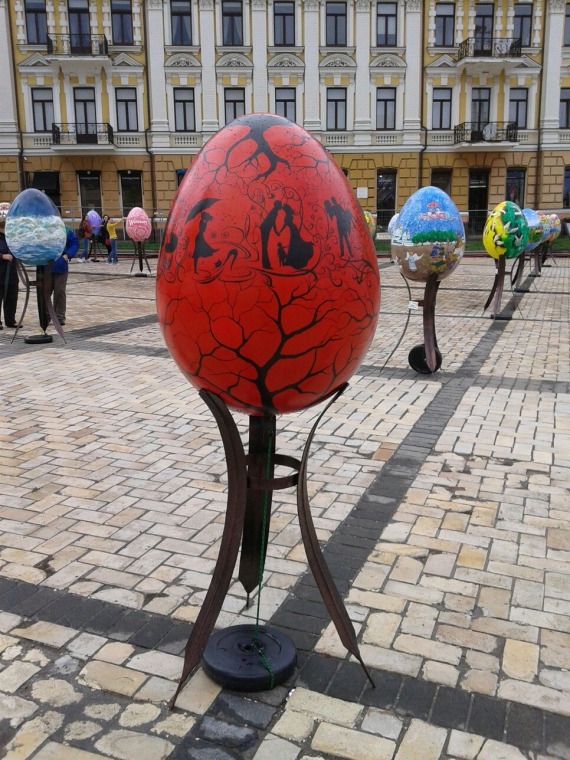 8 апреля на Софийской и Михайловской площадях и Владимирском спуске готовятся к открытию Всеукраинского фестиваля писанок и Арт-перфоманса "585 Художников". Выставка должна была открыться сегодня, но ее перенесли на два дня из-за дождя.