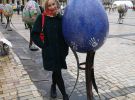 У входа поставили писанку в каплях с отпечатками рук. Это работа дизайнера масок Марины Лапы.