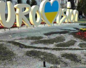 В центре Киева разрушили цветочную композицию, выполненную на Евровидение-2017.