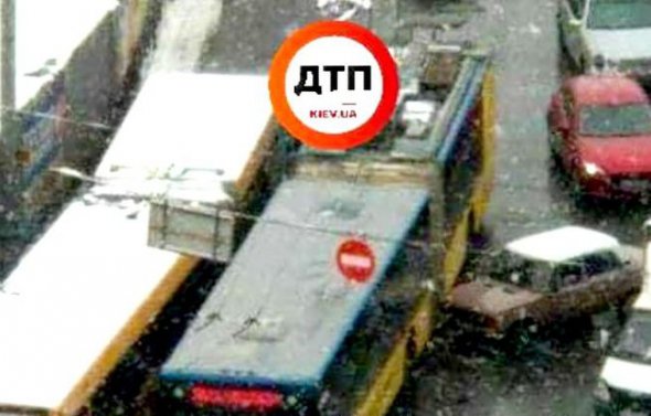19 января в Киеве на Дарницкой площади произошло ДТП с участием троллейбуса и автомобиля ВАЗ.