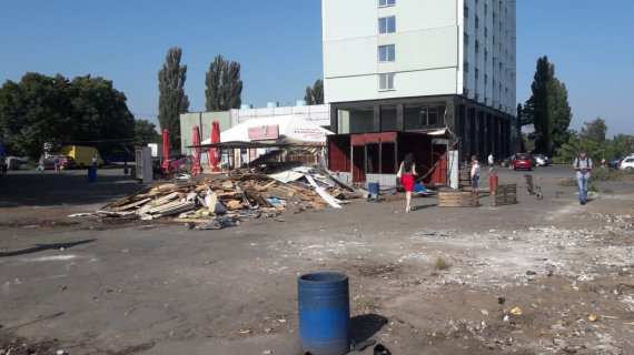 В Киеве ночью разрушили киоски возле станции метро Берестейская.