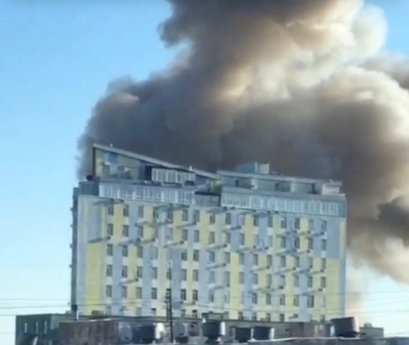 На фотографиях можно разглядеть, как сильный черный дым буквально вырывается из-за многоэтажки.