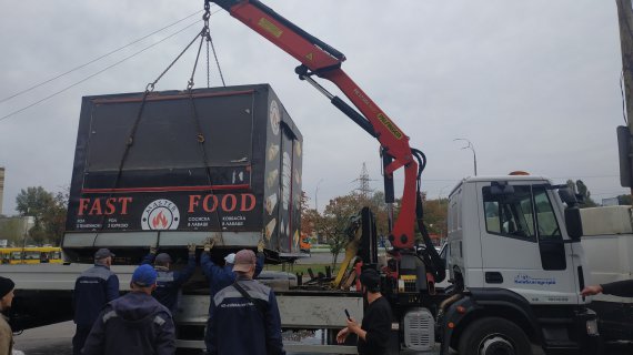 В Киеве ул. Заболотного, 20-А очистили от временных сооружений и объектов сезонной торговли, не имеющих разрешительных документов или установленных с нарушением. Среди демонтированного — купавы, автокофейни, торговые палатки.