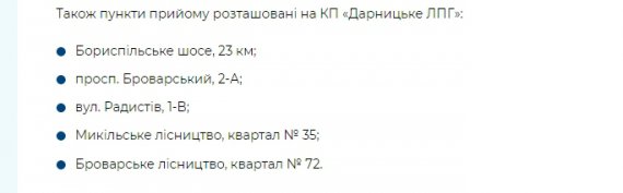 Функционируют пункты на базе районных коммунальных предприятий по содержанию зеленых насаждений и Дарницкого ЛПГ, передает пресс-служба КГГА.