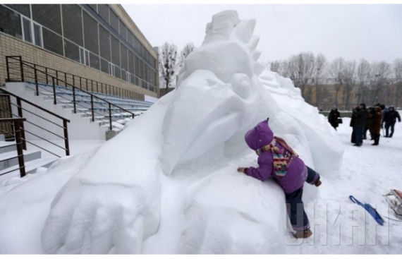 Скульптурная композиция из снега "Рыцари, Грифон, Дракон" создана в рамках проекта Kiev Ice Portal.