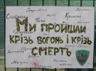 Добровольцы от ОУН приходят с красно-черными флагами. На ограждение вывешивают табличку что теперь место охраняется бойцами подразделения. С другой стороны плакат с названиями городов где воевали. Часть бойцов становится вдоль аллей с красно-черными флагами и украинскими флагами.