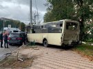 Из-за столкновения водитель автобуса не справился с управлением и наехал на электроопору.