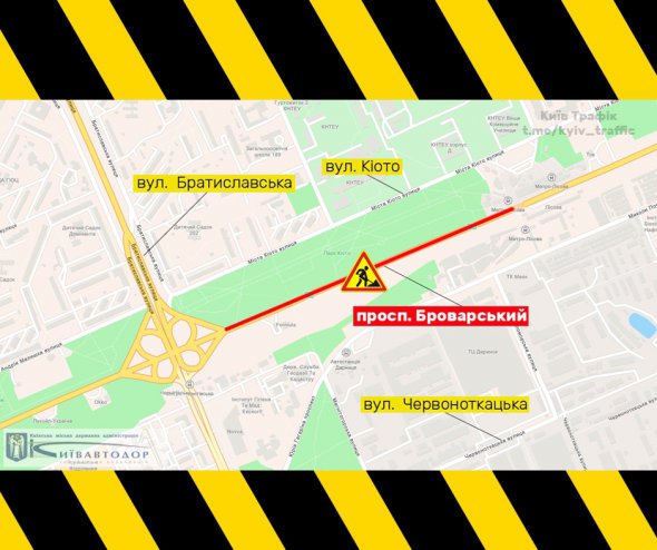 С 20:00 11 сентября до 30 сентября на Броварском просп. столицы ограничат движение транспорта. Там начнется средний ремонт.