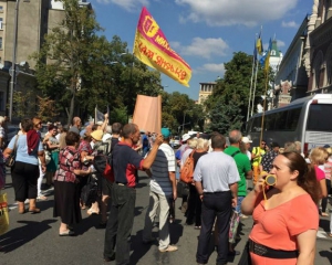 Вкладчики обанкротившегося банка "Михайловский" перекрыли улицу Институтскую возле Нацбанка. Они требуют возврата вложенных средств.