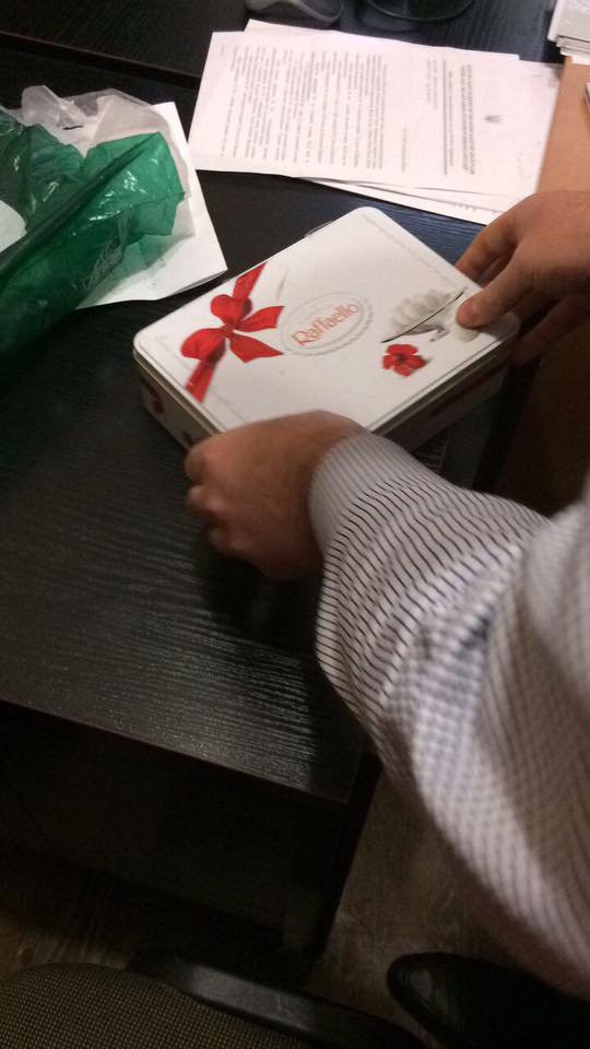 Работники прокуратуры задержали директора строительной фирмы по подозрению в даче взятки заместителю прокурора Киевской области. Купюры в гривнах и долларах были сложены в коробке из-под конфет Rafaello.