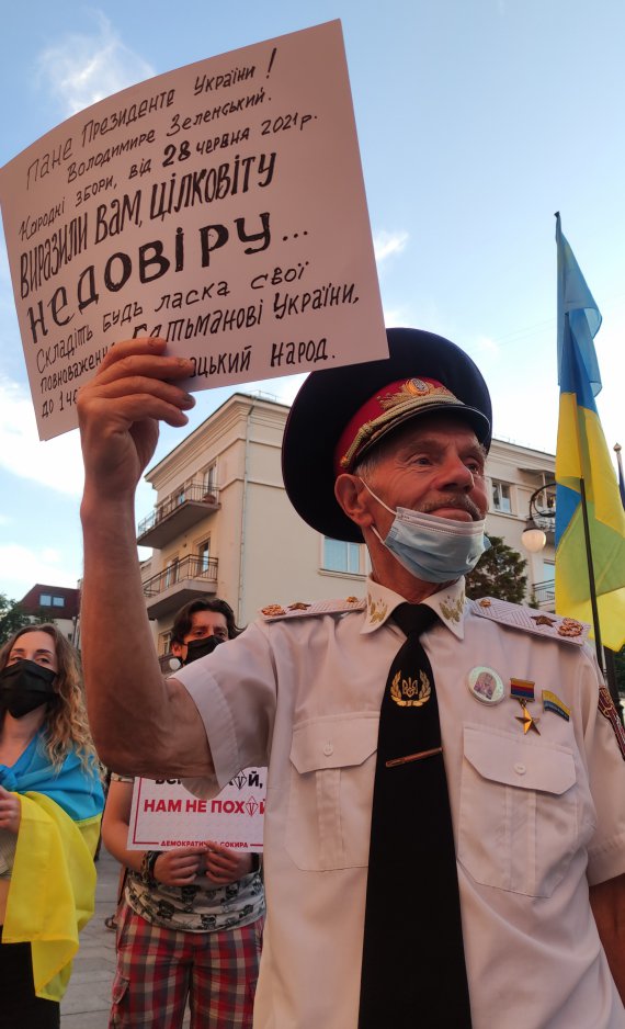 В День Конституции Украины общественность пришла под Офис Президента, чтобы выдвинуть Владимиру Зеленскому "обвинения в госизмене" по делу "вангеровцев".