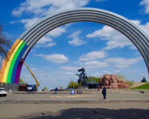 27 апреля в Киеве приостановили работы над раскрашиванием арки Дружбы народов в цвета радуги. Проект планировали реализовать к песенному конкурсу Евровидение. Инсталляцию назвали "Арка разнообразия". На сооружение наклеивали разноцветную бумагу, которую столичные власти обещали снять после конкурса.