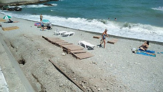 Местные пляжи пустуют, в море почти никто не купается, а туристы не спешат ехать на полуостров. Фото пустых пляжей на оккупированном полуострове опубликовала в Twitter блогер RoksolanaToday & Крим25%.