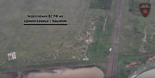 "Уже за самой административной границей с материковой частью Украины начинаются укрепрайоны и военные базы. Мы покажем вам две из них - базу специального назначения и военно-воздушных сил", - говорится в описании к видео, снятого волонтерами.