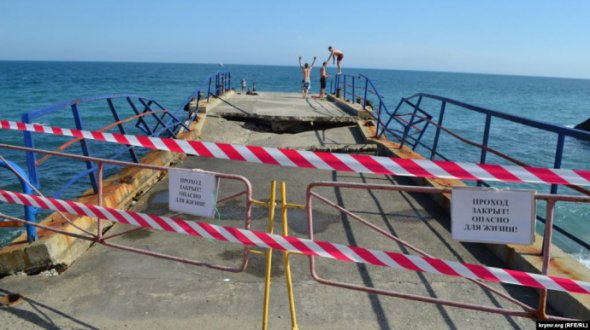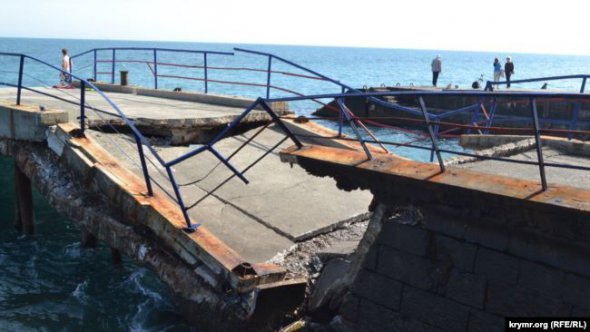 В оккупированном поселке Мисхор, на пляже "Русалка" обвалился причал для швартовки катеров.
