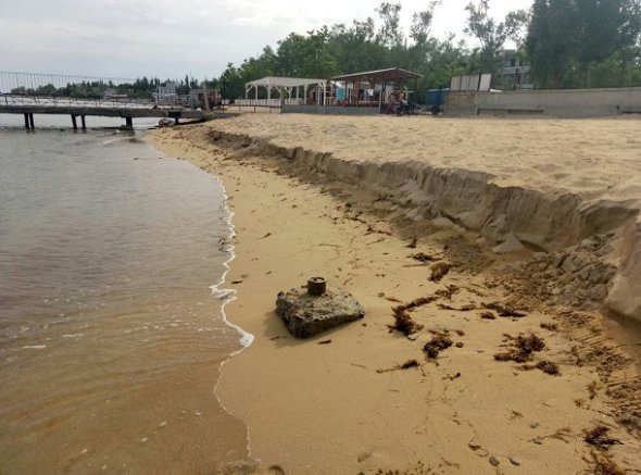 "Евпатория Заозерное. Скоро вообще пляжа не останется, раньше так нагло песок не крали! Так процветает Крым. Если что, торчат из песка сваи, а от навеса до воды было не менее 3,5 метров", - написал автор публикации.