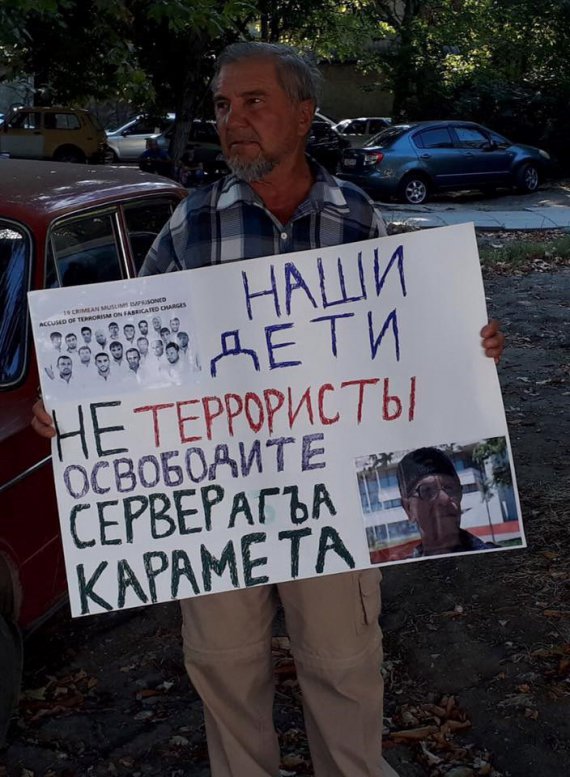 14 августа в Симферополе они вышли на пикет в поддержку 76-летнего крымскотатарского активиста Сервера Караметова. Его арестовали за призыв освободить политзаключенных.