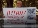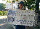 Люди держали плакаты, на которых были написаны те же слова, что и в арестованного Караметова: "Путин! Наши дети не террористы и не экстремисты".