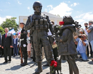 В оккупированном Симферополе в субботу открыли памятник так называемым "вежливым людям", которых также называют "зелеными человечками".
