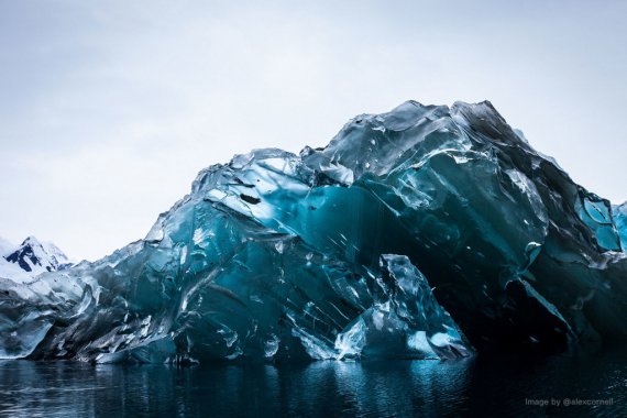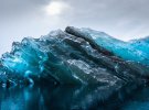 Изображенный айсберг похож на драгоценные камни. Обычно в природе айсберги имеют белый цвет. Однако когда в них нет пузырьков воздуха, которые под действием давления не образуются при возникновении льда, то становятся синими. На форму и цвет айсберга повлияло и то, что он долгое время находился под водой.
