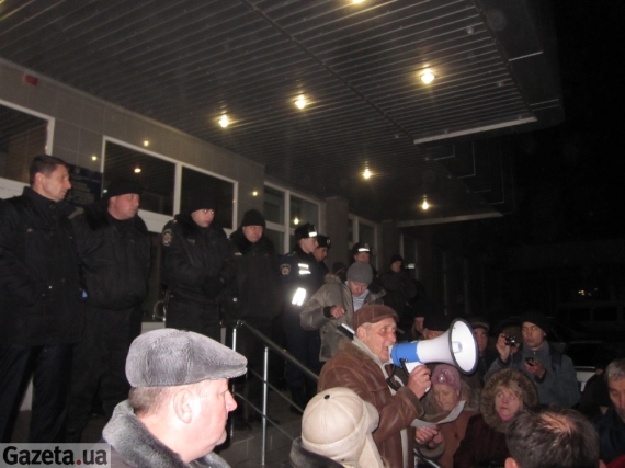 Снаружи вход в здание охраняли работники "Беркута", а внутри государственного учреждения - работники частной охранной фирмы "Руслан", которые препятствовали доступу журналистов.