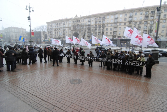 Около 300 активистов общественных организаций "Защитим старый Киев", "Наступ", ВО "Свобода", партии "Батькивщина и" Удар "пикетировали здание Киевсовета. Там в 10.00 депутаты должны утверждать столичный бюджет и программу социально-экономического развития. По словам оппозиционных депутатов, предполагалось значительное сокращение муниципальных надбавок к зарплатам бюджетникам.