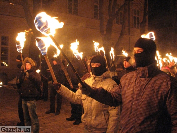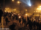 Сбор участников марша начался в 19 часов. Организаторы сразу выстраивали людей в колонну. На дворе было около 15 градусов мороза. За каждый факел из людей просили от 2 гривен - символическая плата.