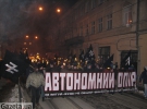 Впереди колонны молодые ребята несли два баннера с надписями: "За мертвых, живых и нерожденных" и "Автономний Опір". Колонна растянулась на 300 метров длиной. Двигалась она от площади Рынок улицей Беринды, обошла памятник Шевченко и продолжила шествие по улице Дорошенко, Бандеры, держа направление к постаменту Степану Бандере.