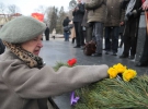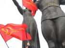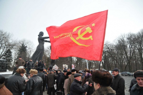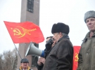 Они отмечали День защитника Отечества. Сначала к Монументу был положен венок. После этого люди развернули красные флаги с символикой Коммунистической партии и флаги Прогрессивной социалистической партии Наталии Витренко.