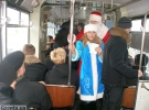 Дед Мороз и Снегурочка поздравляли с Новым годом всех пассажиров , которые заходили в салон общественного транспорта. Детям, которые рассказывали стишок или пели песенку, дарили сладости и календарики. В одном из троллейбусов рассказать стихотворение про Новый год захотела 35-летняя женщина. Все ей аплодировали. А Дед Мороз со Снегурочкой подарили конфетку.