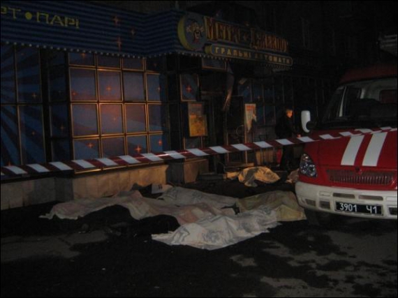 Очаг воспламенения располагалась с внутренней стороны у входа в зал. Охранники попробовали огнетушителями потушить огонь, однако дым не дал возможность этого сделать. Дым распространялся очень быстро, посетители и две девушки - работницы зала, не успев выбежать из помещения, задохнулись. Gazeta.ua.