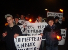 После флеш-моба молодежь из лампадками пошла к памятнику жертвам Голодомора. Там провели короткое вече и помянули людей погибших минутой молчания.