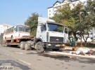 Напоследок на платформу загнали самое тяжелое, что нашлось среди спецтехники на территории облавтодора, - массивный гусеничный асфальтоукладчик. Богатырь сдвинул тягач с места, но разорвался трос. После его замены на новый платформу богатырь протянул на 8 метров.