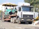 Он протянул грузовой тягач на кузове которого разместился 18,8 тонный гусеничный асфальтоукладчик.