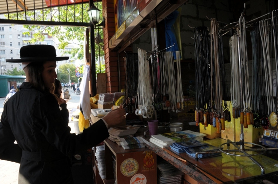 "Хасиды часто крадут вещи с прилавков , - рассказывает продавец Александр . - Поэтому все нужно прятать за сеткой. Больше всего для детей покупают игрушечное оружие . Цена от 4 до 16 долларов . Паломники всегда торгуются , стартовая цена одинакова "ван доллар " . Я им никогда не уступаю " .