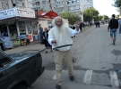 По улице идет седой хасид с длинной бородой. Что-то напевает на русском, машет руками.