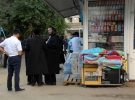 1 сентября вечером при въезде на улицу Пушкина , где проживают хасиды , стоят милицейские блокпосты . Они проверяют документы у местных жителей и гостей . Впускают только по пропускам , а местных по прописке .