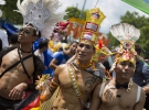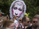 Участники шествия, как и в прошлый раз, несли портреты Владимира Путина с разрисованным лицом и надписью "Я здесь дива".