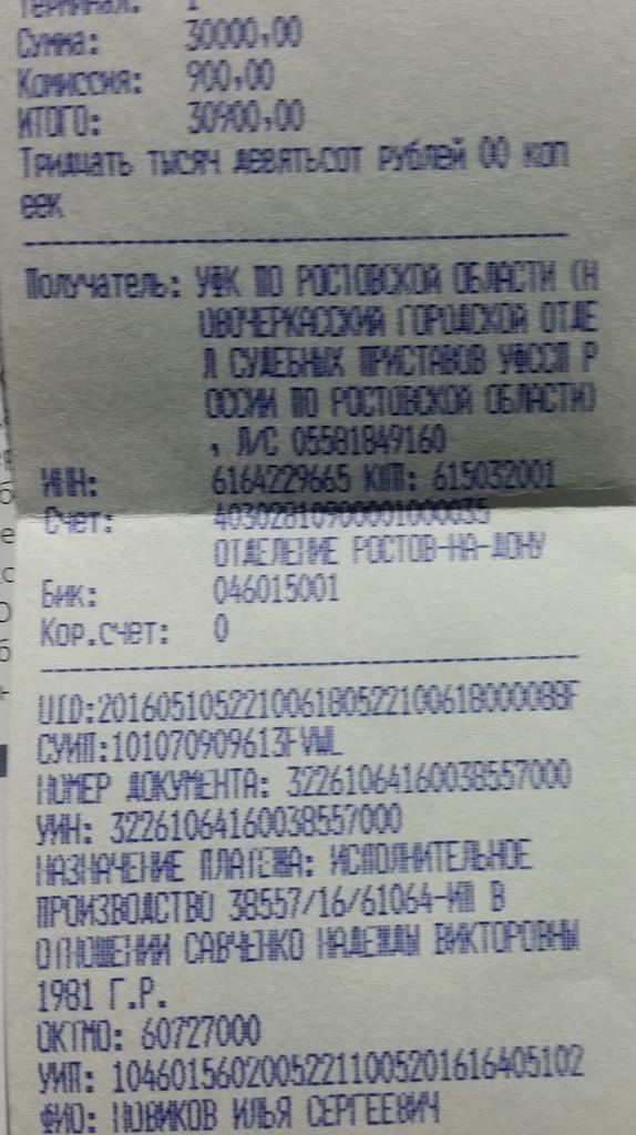 Адвокат незаконно осужденной в РФ Надежды Савченко Илья Новиков показал квитанцию об оплате его подзащитной штрафа, присужденного в России.