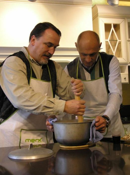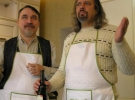Писатели и издатели Виталий и Дмитрий Капрановы устроили мастер-класс по приготовлению баноша и мамалыги. В этом им помогал писатель Сергей Пантюк.