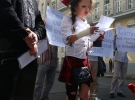 Сегодня утром возле Администрации президента организации "Коалиция участников оранжевой революции" и "Черный комитет" провели акцию "Изнасилование 16-летней "Конституции".