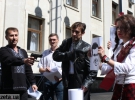 Сергей Мельниченко из водного пистолела несколько раз "выстрелил" в портрет президента Виктора Януковича, который держала в руках "Конституцию".