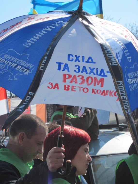Желающие могли высказать свое мнение в микрофон. Для добровольных пожертвований на автопробег стояла шкатулка, в которую кое бросал деньги. Также уманцы покупали в "автомайданцев" книги с информацией для предпринимателей. Письма с подписями всех участников митинга "автомайдановцы" пообещали передать президенту, чтобы показать недовольство народа властью.