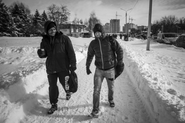 Представление не получается. 95-килограммовый камерунский атлет, в трусах, на замёрзшем Днепре, привлекает гораздо меньше внимания, чем ожидаешь. Только на обратном пути к Дональду подлетает съёмочная группа местной телекомпании — с вечным вопросом о впечатлениях.
