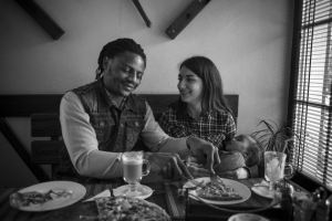 В кафе Нджатах заказывает большую пиццу и "сковородку по-грузински" с картошкой и мясом. Морщится — невкусно. Национальную еду готовит сам, когда мать присылает из Камеруна продукты. Младшего из пяти своих детей она держит под присмотром и каждый день звонит в Черкассы по скайпу.